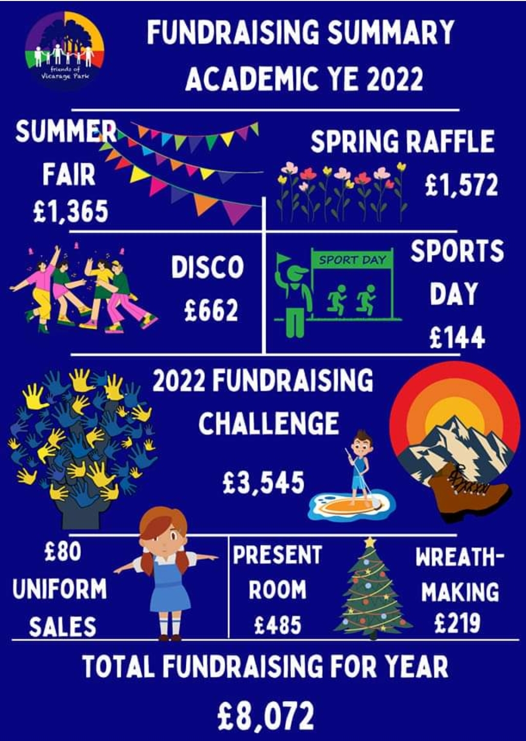 We are a registered charity, run by a small committee of parents and carers, with the aim of raising additional funds for the school to be put towards the educational needs of the children of Vicarage Park.
